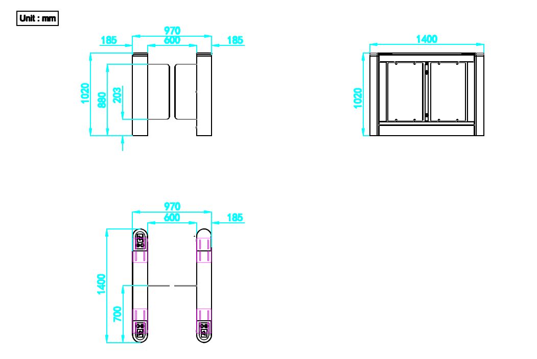 1. 外形尺寸: 長(zhǎng)*寬*高:1400 mm *185mm *1020 mm