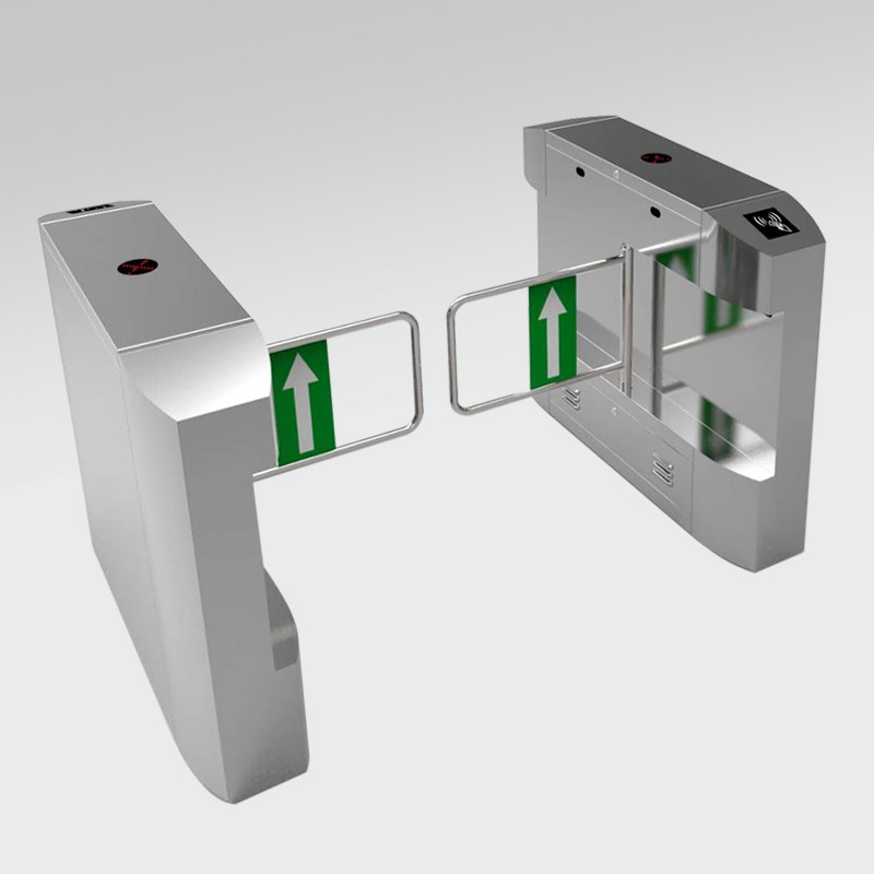 擺閘:擺閘又被稱為拍打門、速通門,其阻攔體(閘擺)是具備一定面積的平面,垂直于地面,通過轉(zhuǎn)動擺門完成阻攔和放行。阻攔體的材料一般用不銹鋼板、有機(jī)玻璃、鋼化玻璃做成,有的還選用金屬片外包獨(dú)特的軟性原材料(降低碰撞非機(jī)動車的損害),常見的便是橋式擺閘和圓圓柱擺閘。