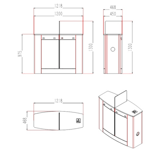 1400長(zhǎng)*340寬*975高(MM) (可按現(xiàn)場(chǎng)通道寬度定制) |