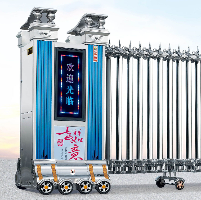 帝王系列伸縮門,是歐風(fēng)不銹鋼伸縮門,外觀霸氣陽剛,頂部樣式繁多,如皇冠、權(quán)杖、桃心、羅馬柱等。整體無焊接,不生銹,堅固耐用。久用不發(fā)燙,開合無噪音,十分大氣。