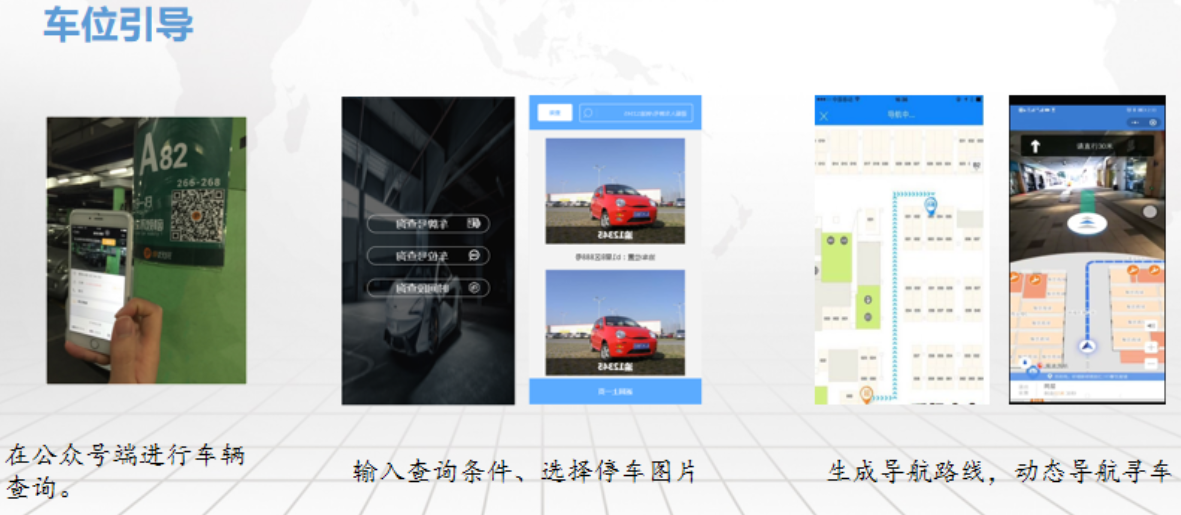 3.車主需要提車時,通過在尋車查詢機(jī)或者手機(jī)小程序上輸入車牌號碼的方式進(jìn)行查詢,鏈接后臺系統(tǒng)服務(wù)器進(jìn)行數(shù)據(jù)同步,顯示顧客停車位置及車輛圖片,并提供抵達(dá)停車位置的最優(yōu)路線,引導(dǎo)客戶快速的找到車輛。